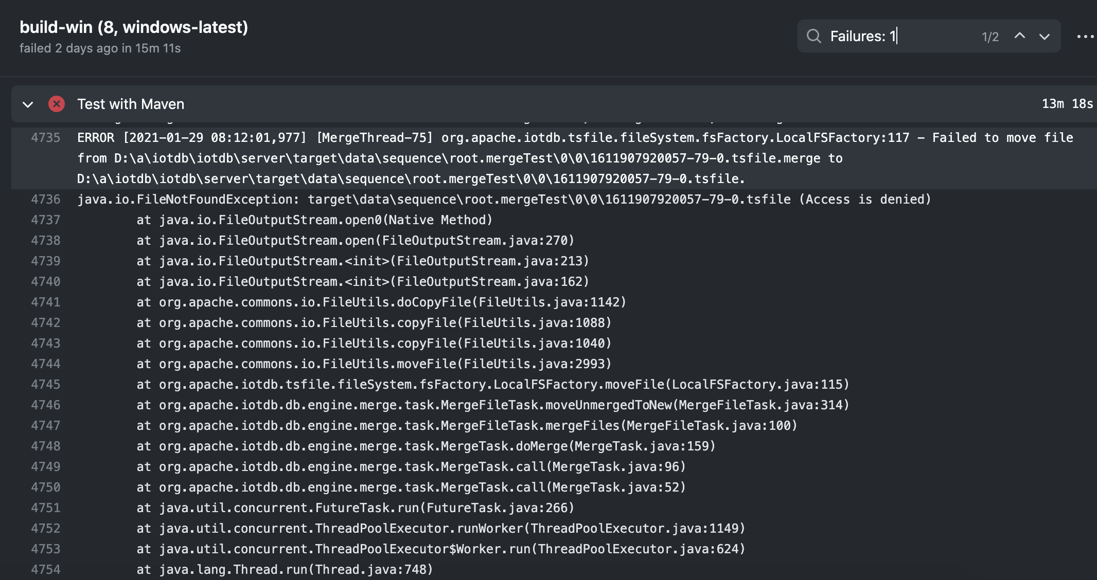 Every time this ci problem occurs, there will be a file not found error and it is all windows ci. Although the wrong test was not manually merged, I guessed that it was because the last test reported 'file not found' error affected this test |