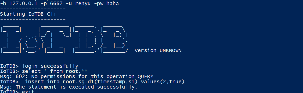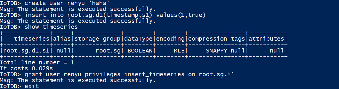 create user, grant insert_timeseries