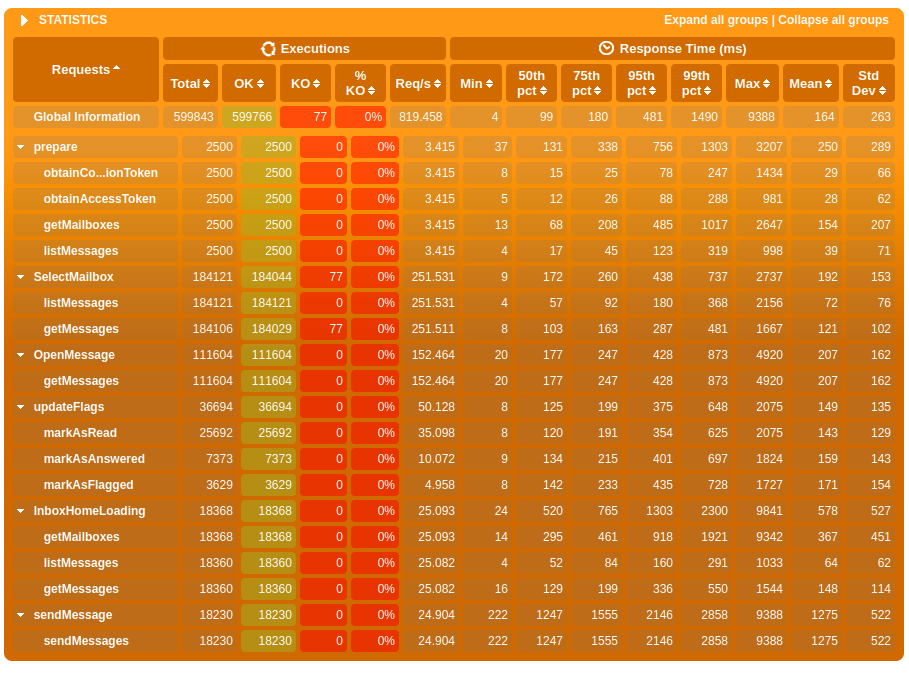 Here are the associated gatling run: