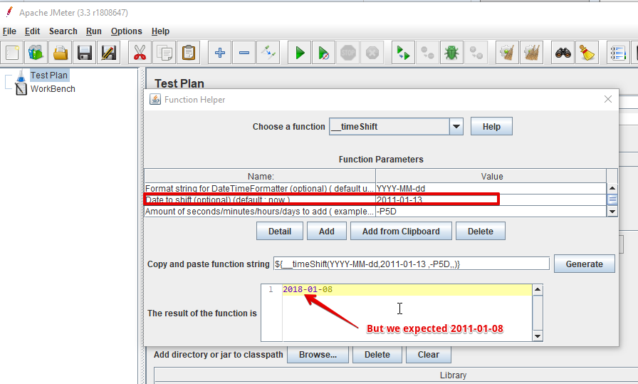 - Date to shift (optional)- to set value 2011-01-13