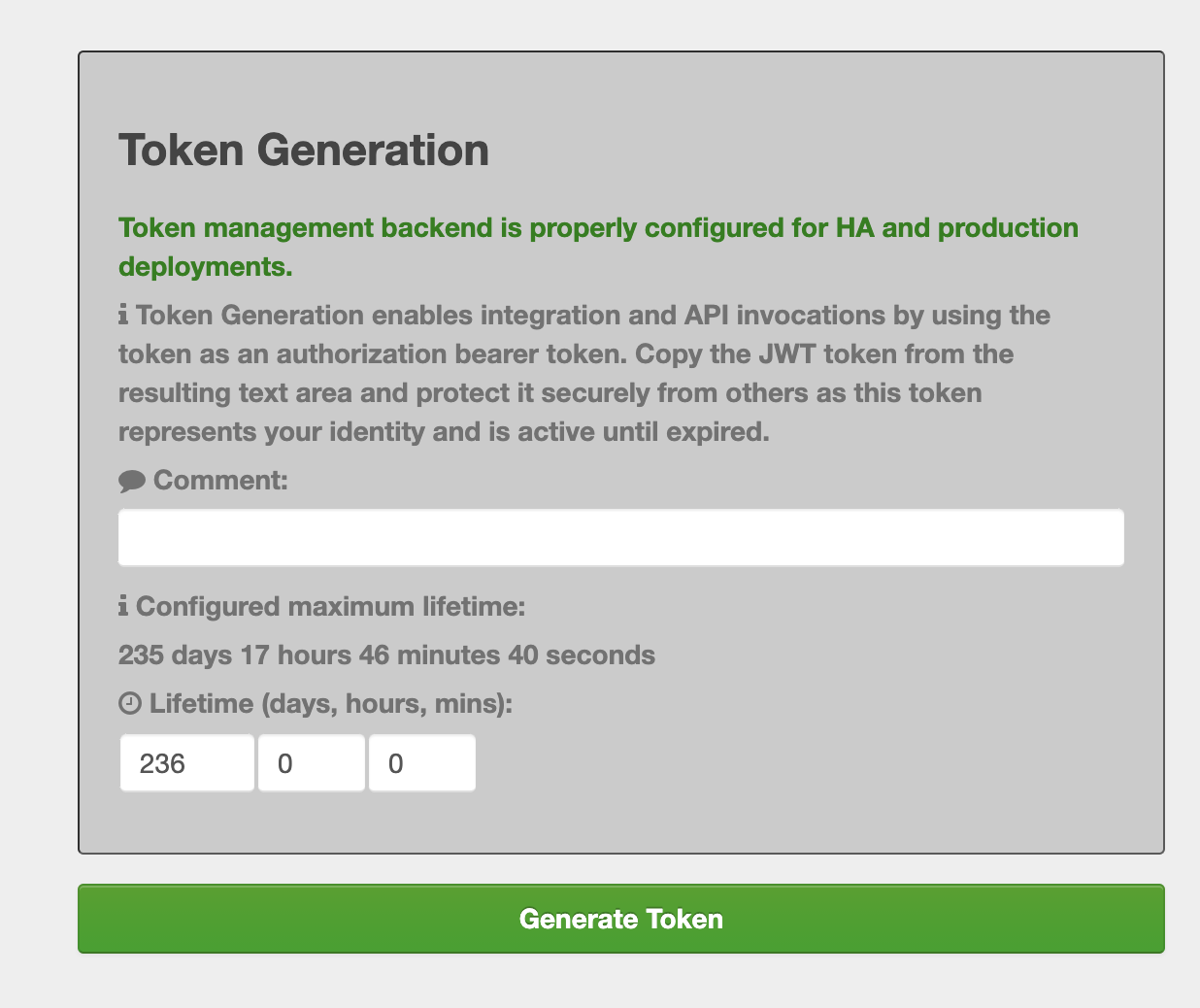 In order to avoid misunderstandings and customer escalations, the token generation UI now indicates what is the configured maximum lifetime (