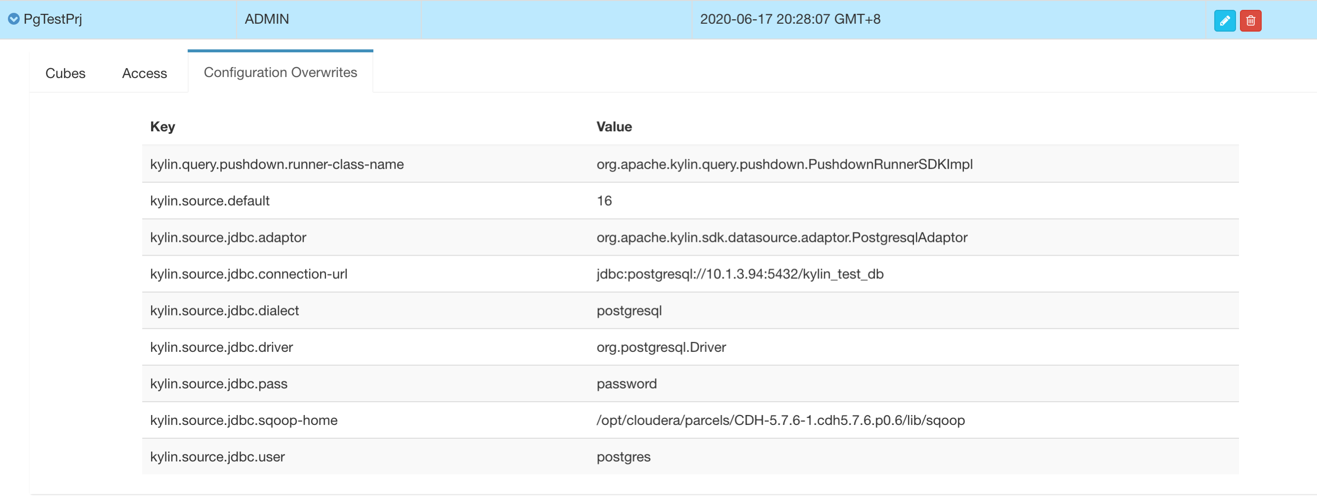 Test ReportRoot causeFrom the documentation of pg, we know that when identifier is quoted, identifier is case sensitive, but Kylin use all upper-case, which make quoted identifier not identifiable by pg. At my patch, I disable all quote switch in Test ResultAfter applied my patch, build from pg data source is fine, but pushdown is still not work, because it is caused by another patch from KYLIN-4068 . 2020-06-18 11:41:50,986 DEBUG [http-bio-8005-exec-4] extensible.JdbcHiveInputBase:129 : sqoop cmd: --connect "jdbc:postgresql://10.1.3.94:5432/kylin_test_db" --driver "org.postgresql.Driver" --username "postgres" --password "password" --query "SELECT FILM_PLAY.AUDIENCE_ID as FILM_PLAY_AUDIENCE_ID ,FILM_PLAY.FILM_ID as FILM_PLAY_FILM_ID ,FILM_PLAY.WATCH_TIME ,FILM_PLAY.PAYMENT as FILM_PLAY_PAYMENT FROM SC1.FILM_PLAY as FILM_PLAY LEFT JOIN SC2.AUDIENCE as AUDIENCE ON FILM_PLAY.AUDIENCE_ID = AUDIENCE.AUDIENCE_ID LEFT JOIN PUBLIC.FILM as FILM ON FILM_PLAY.FILM_ID = FILM.FILM_ID WHERE 1=1 AND (FILM_PLAY.WATCH_TIME >= '2012-01-01 00:00:00' AND FILM_PLAY.WATCH_TIME < '2012-12-01 00:00:00') AND \$CONDITIONS" --target-dir "hdfs://cdh-master:8020/LACUS/LACUS-tmp/kylin-ef6e4fd7-f72d-f7a0-fdca-b32bb0153493/kylin_intermediate_filmanalysis_5b0b0b6a_0ad3_14fd_30ed_27cf74504666" --split-by "FILM_PLAY.WATCH_TIME" --boundary-query "SELECT min(FILM_PLAY.WATCH_TIME), max(FILM_PLAY.WATCH_TIME) FROM SC1.FILM_PLAY as FILM_PLAY WHERE FILM_PLAY.WATCH_TIME >= '2012-01-01 00:00:00' AND FILM_PLAY.WATCH_TIME < '2012-12-01 00:00:00'" --null-string '' --fields-terminated-by '|' --num-mappers 4