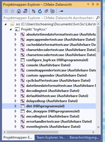 At least on *nix, this creates a 'make dist' target. With Visual Studio, you need to switch to 'CMake Targets View' in the Solution Explorer. You can then run the target from there.