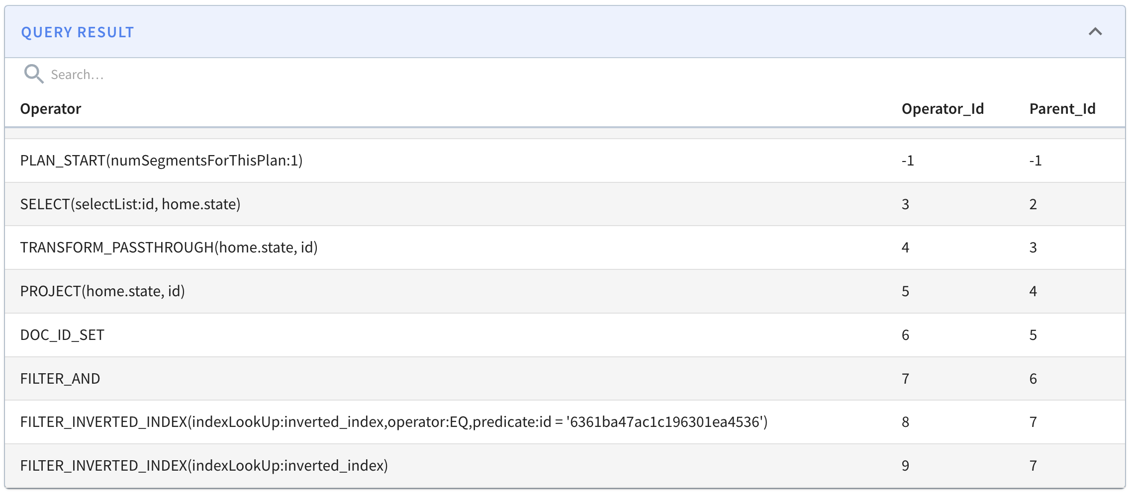 EXPLAIN PLAN FOR select id, "home.state" from user where id IN ('some_id')