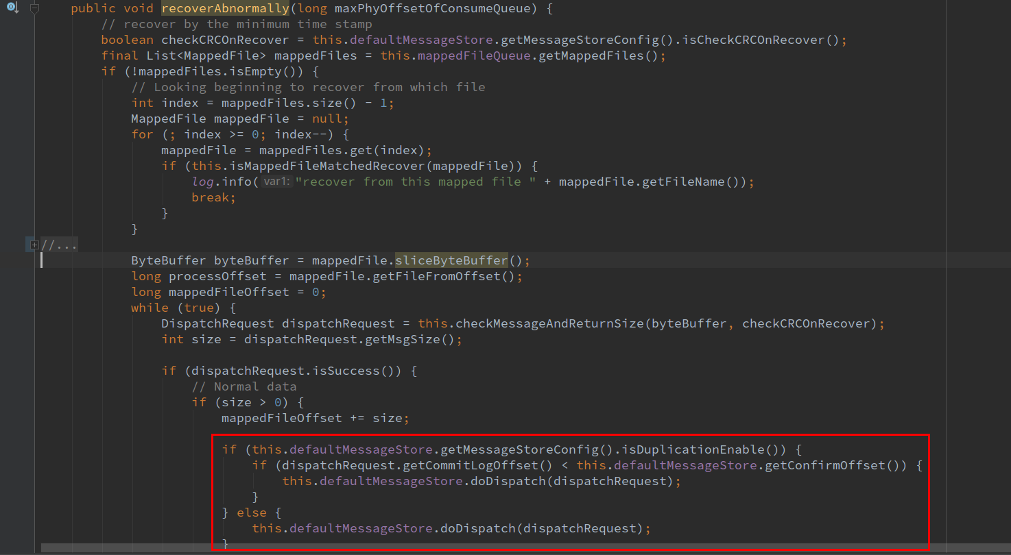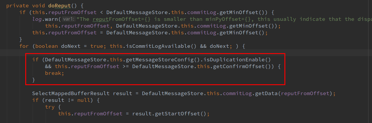 If DuplicationEnable is false, repeated construction is not allowed, so it is necessary to judge whether reputFromOffset is less than comfirmOffset.
