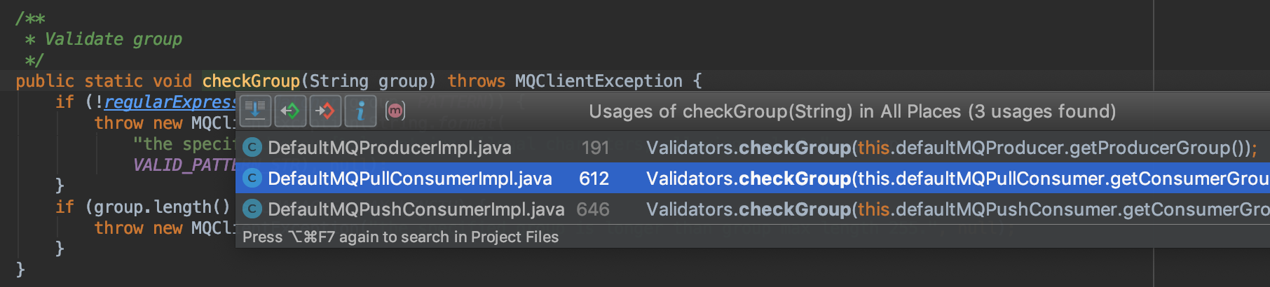 client/src/main/java/org/apache/rocketmq/client/Validators.java checkGroup()