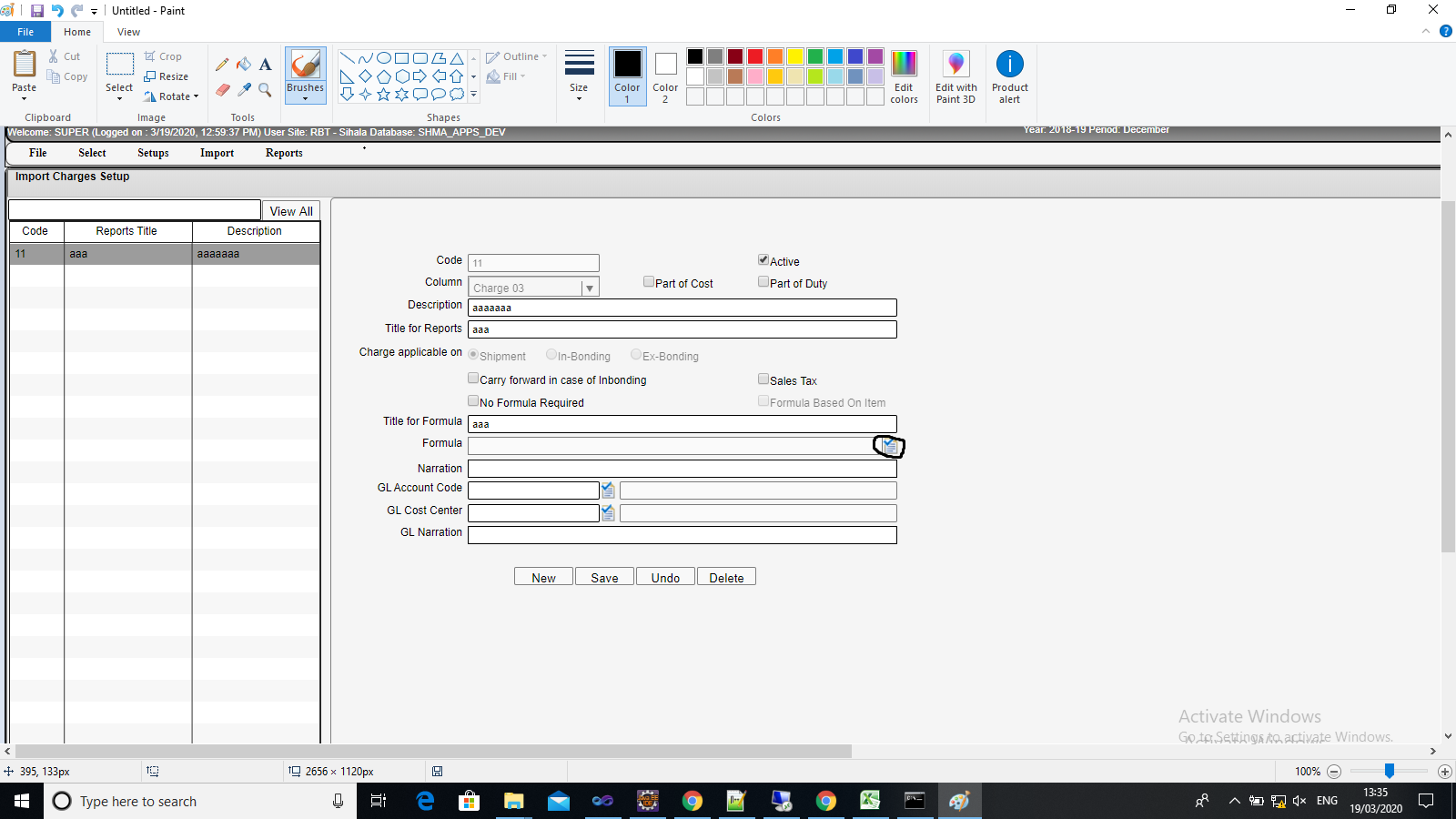 New window will be opened which is : com/dbz/modules/IMP/dbzimportChargerFormulaPopup