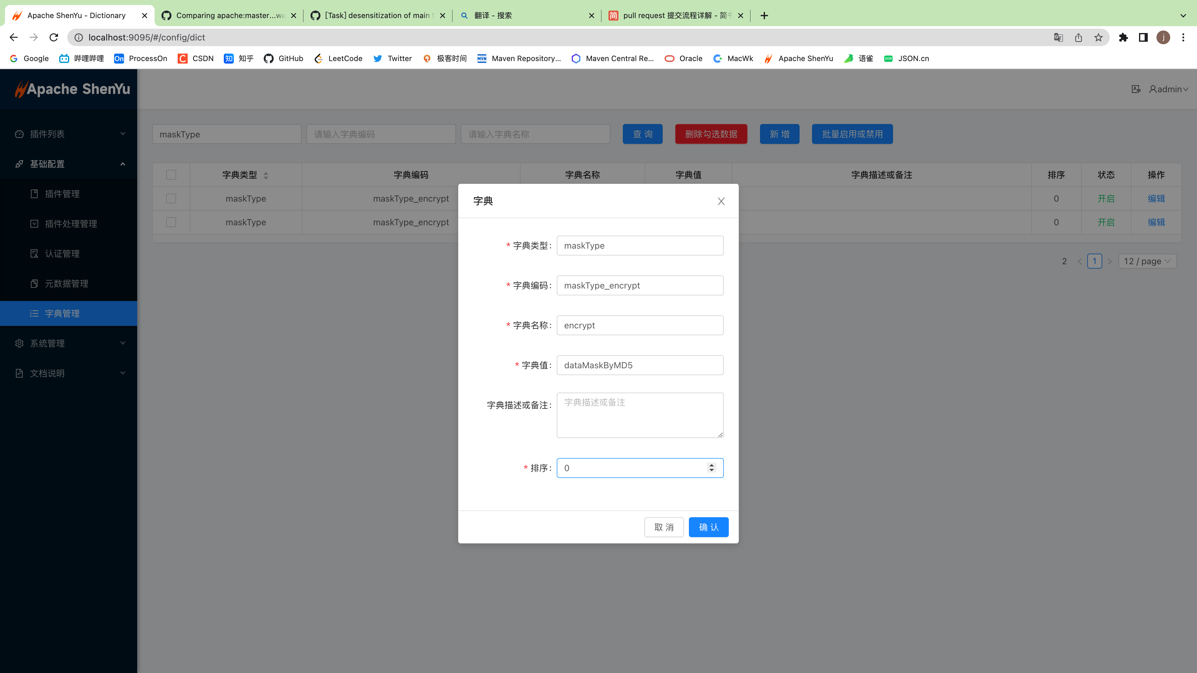 Now,I provide two mask types include charReplace and MD5,then user can extend their own mask types.Only need implements DataMaskInterface and create new dictionary that dictionary type is "maskType" and dictionary value is their function like this: