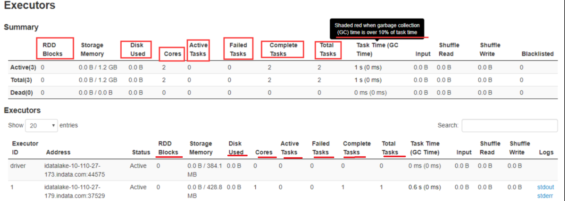 Some column names have tooltip, such as Storage Memory, Task Time(GC Time), Input, Shuffle Read,
