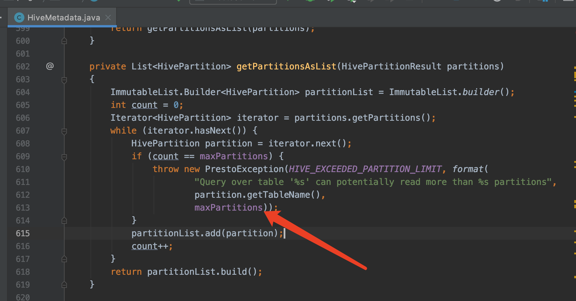 @sunchao Thank you for your response. I think this is a reasonable maximum, and Presto also has a parameter to limit the number of partitions in HiveMetadata#getPartitionsAsList, default value is 100_000