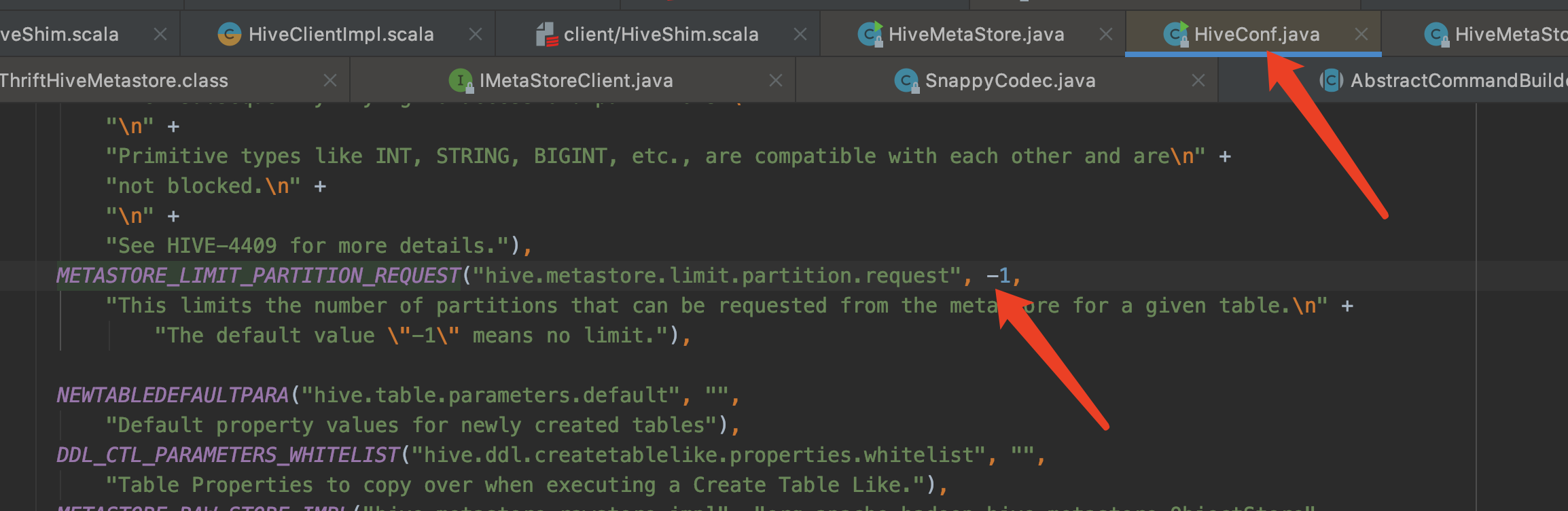 Could you verify is hive.metastore.limit.partition.request works? if it works, we can add it to document. We have added a Hadoop config before: mapreduce.fileoutputcommitter.algorithm.version.