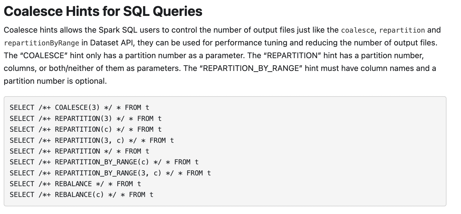Coalesce Hints for SQL Queriesinsql-performance-tuning.md.Why are the changes needed?