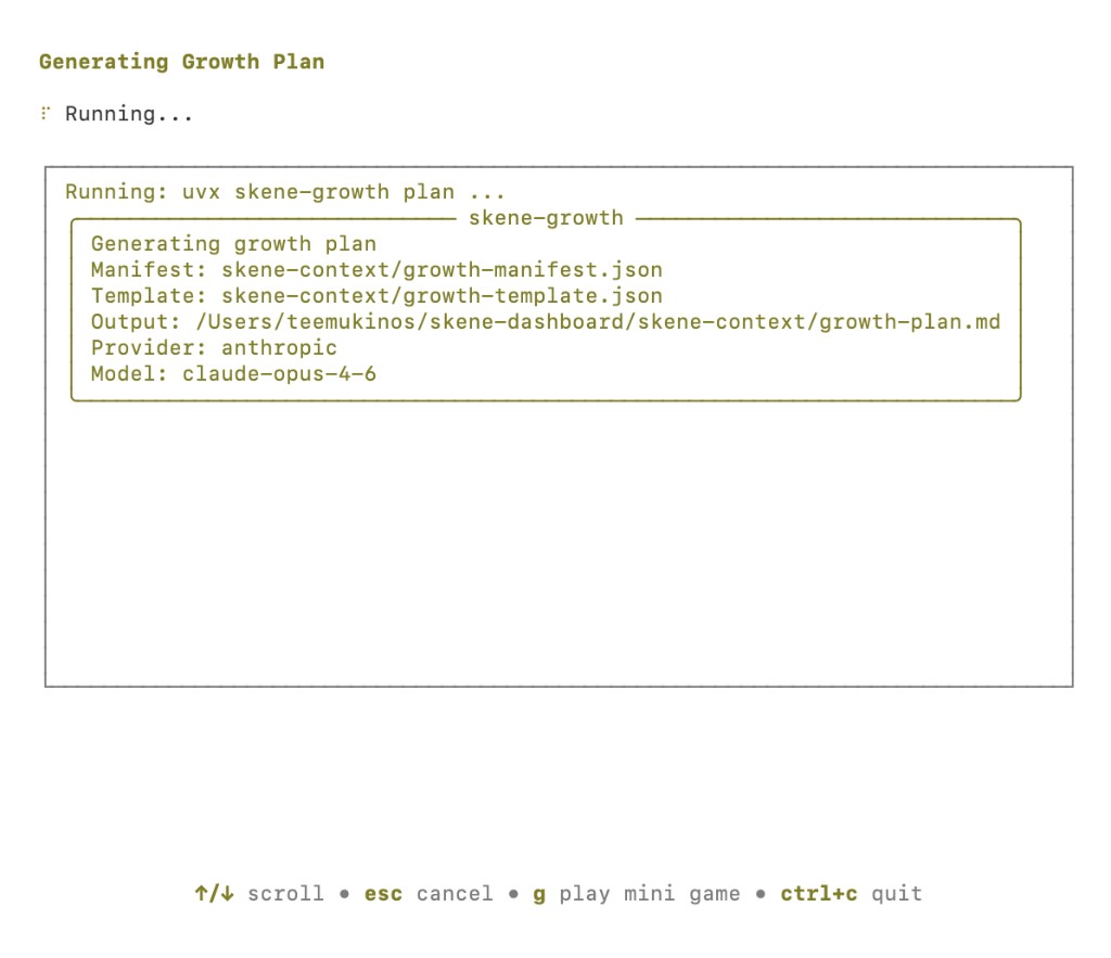 Skene Growth runs in Cursor, Claude Code, or the terminal; you install it locally and it analyses the repo to suggest the next growth step.