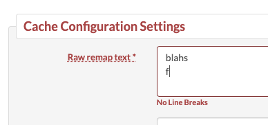 hmm. i can't replicate. this submits fine in both chrome and firefox as i would hope. it makes it past the api so it appears to be getting trimmed. also, remap.config looks fine when i submit that value ^^ it's only when i added a value on a 2nd line that the field becomes invalid which is what i want. |