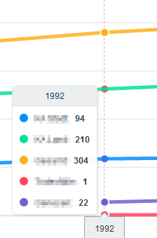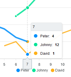 Hover over 7 on the x axis. The colors of the points on the yellow and blue lines are swapped.
