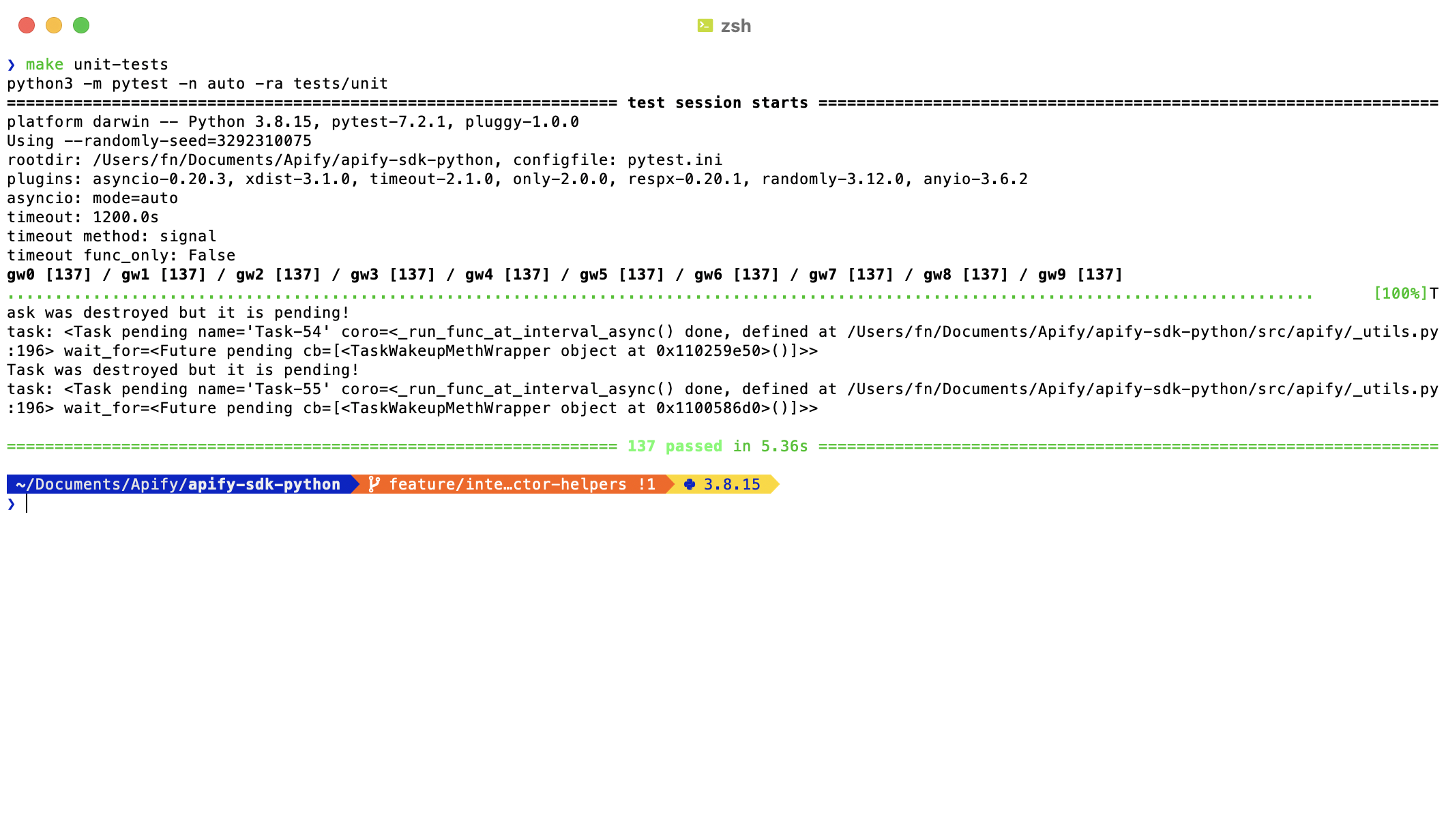 We had a small bug in the unit tests that some actors were not exited cleanly, so their event-emitting intervals were still running, and pytest was showing a warning about an async task being destroyed but still pending: