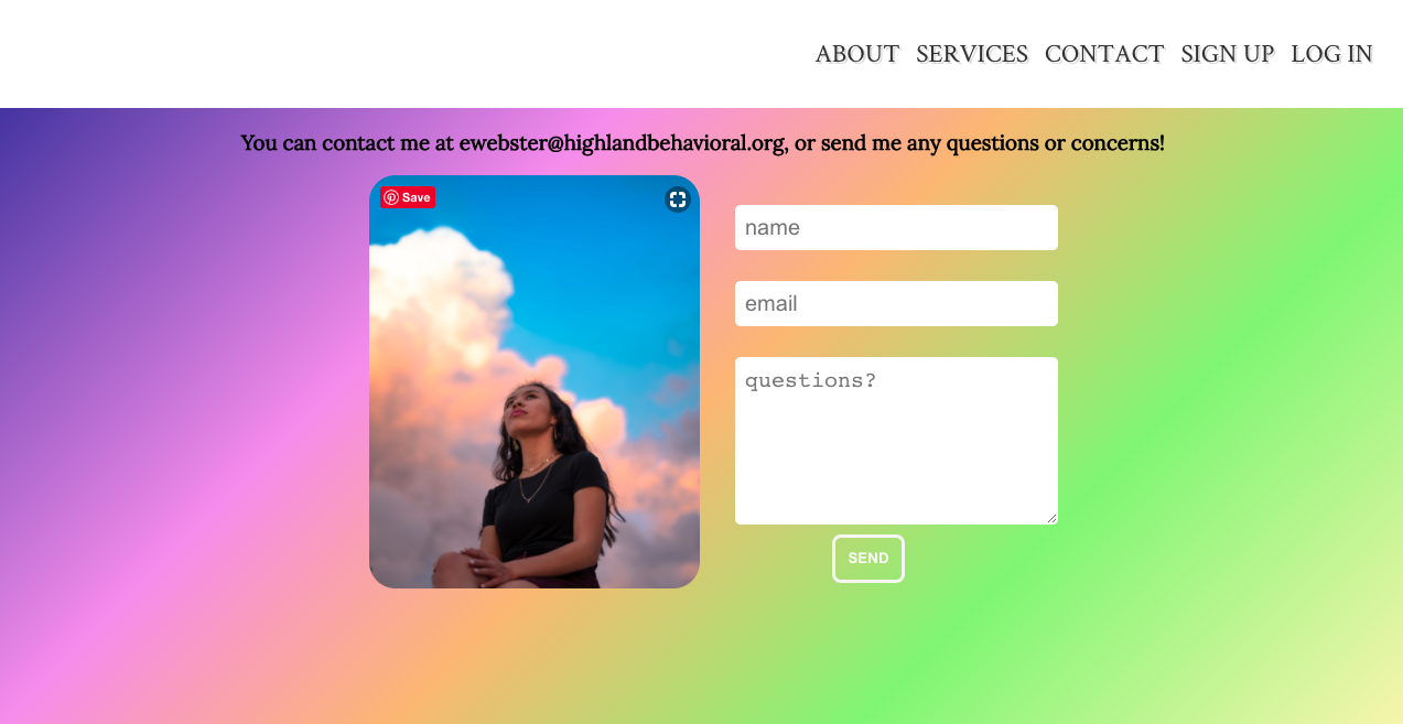 Sonrisa Counseling LLC is the private practice for mental health counselor E. Webster. This website will provide some basic information to potential clients, and a contact form should they wish to pursue therapy.