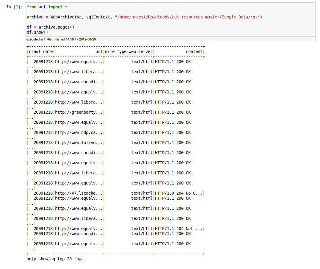 archive = WebArchive(sc, sqlContext, "/path/to/aut-resources-master/Sample-Data/*gz")