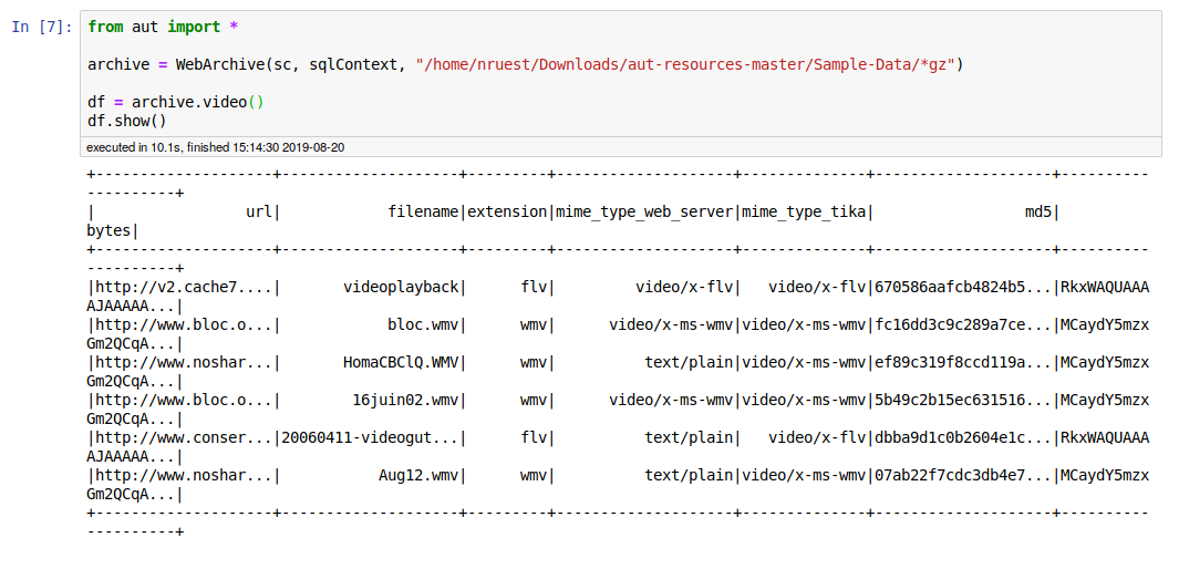 archive = WebArchive(sc, sqlContext, "/home/nruest/Downloads/aut-resources-master/Sample-Data/*gz")