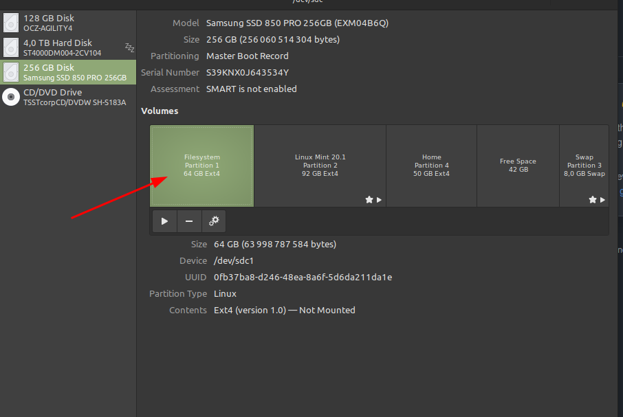 Partitions: odict_items([('1', Partition(path=/dev/sdc1, size=59.6, PARTUUID=d04d8e5d-01, fs=ext4)), ('2', Partition(path=/dev/sdc2, size=85.9, PARTUUID=d04d8e5d-02, fs=ext4)), ('3', Partition(path=/dev/sdc3, size=7.5, PARTUUID=d04d8e5d-03, fs=swap)), ('4', Partition(path=/dev/sdc4, size=46.6, PARTUUID=d04d8e5d-04, fs=ext4))])