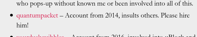 all the years i've been seeing this guy here he was only trolling and slandering other devs. he could never possibly create anything on his own and thats why he was reposting other devs work as his own. by the way if anyone knows his real name i'm all ears (and eyes) |