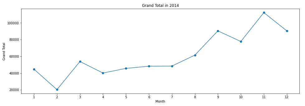 - To know the grand total per month in each year and month with the highest and lowest grand total in each year.