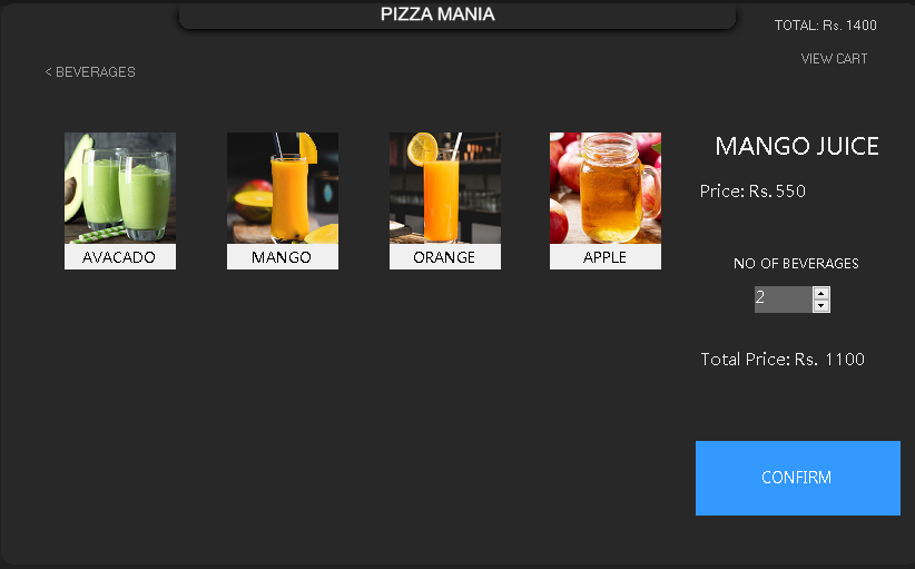 Menu An app to book pizza,beverages and desserts easily. Note: This app is partially created and not fully fininshed. Screenshots