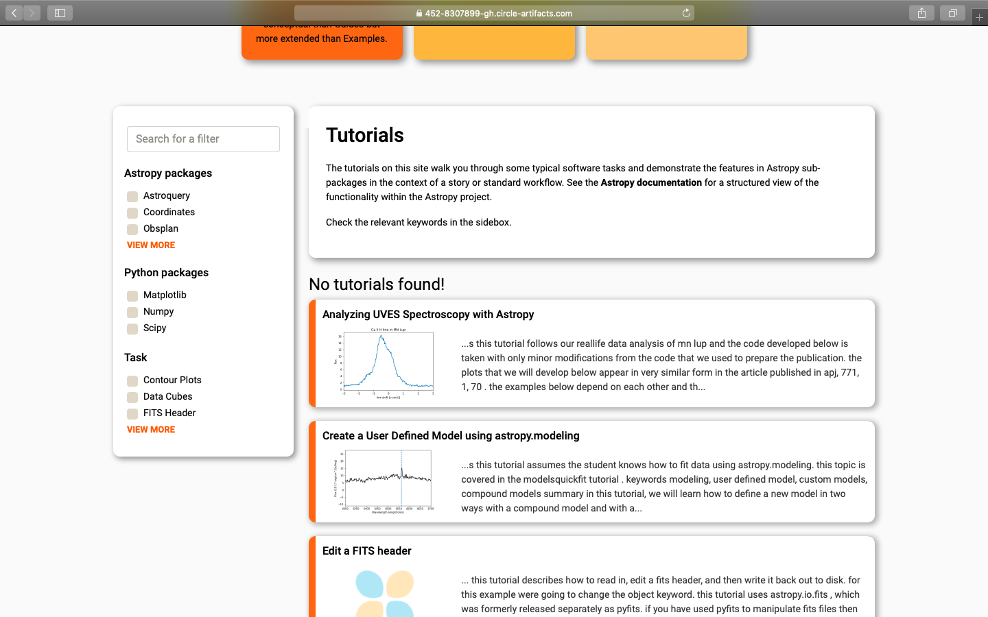 To follow up on PR #340. To try and find a way to add back filter search warning when no tutorials are returned on a filter search.