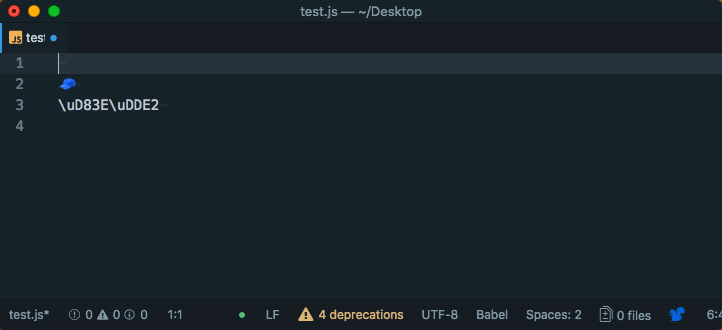 \uD83E\uDDE2, are not appearing in string searches. If you have the actual un-escaped emoji, they appear instead. This means, it's impossible to search for escaped emoji codes, for example,\uD83E\uDDE2as text.Steps to Reproduce