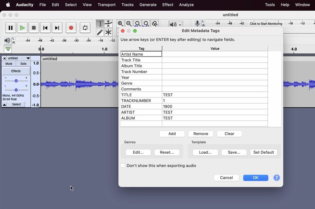 **Describe the bug** When exporting a Wavepack audio file with some metadata, it adds some additional metatag fields to the file. **To Reproduce** Steps to reproduce the behavior: 1. Load an audio 2. Go to _'Export > Audio'_ 3. Select 'WavPack Files' in 'File Type' 4. Click **Save** 5. In Edit Metadata Tags dialog fill out the tags and click **OK** 6. Import this file in a new project 7. Go to _'Edit > Metadata'_ and check the metadata values **Actual behavior** The values filled out during export are added at the bottom of the table under the uppercase metadata tags:  **Expected behavior** No new metadata tags added **Screenshots** https://user-images.githubusercontent.com/70063970/177596460-99bfeadc-b074-4b3a-aca6-980f83fc7207.mp4 **Additional information (please complete the following information):** - OS: [e.g. Mac High Sierra, Ubuntu 18.04, Windows 10] - Version [audacity-macOS-3.2.0-alpha-20220624+d82b516-universal](https://github.com/audacity/audacity/suites/7078482701/artifacts/279584440)