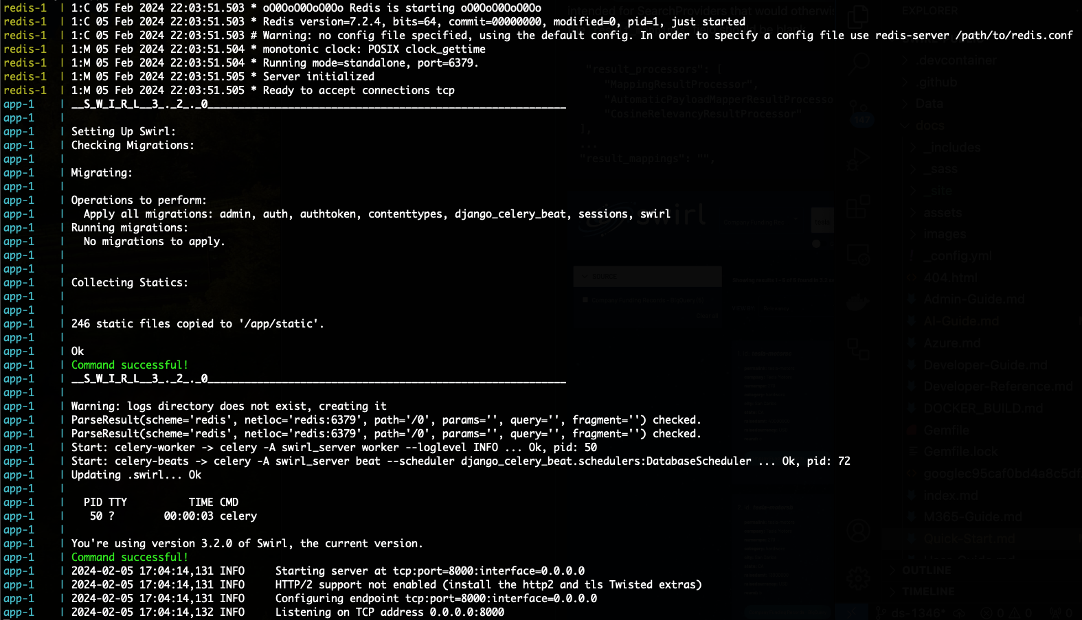 - Optional: To enable Swirl's Real-Time Retrieval Augmented Generation (RAG) in Docker, run the following commands from the Console using a valid OpenAI API key: