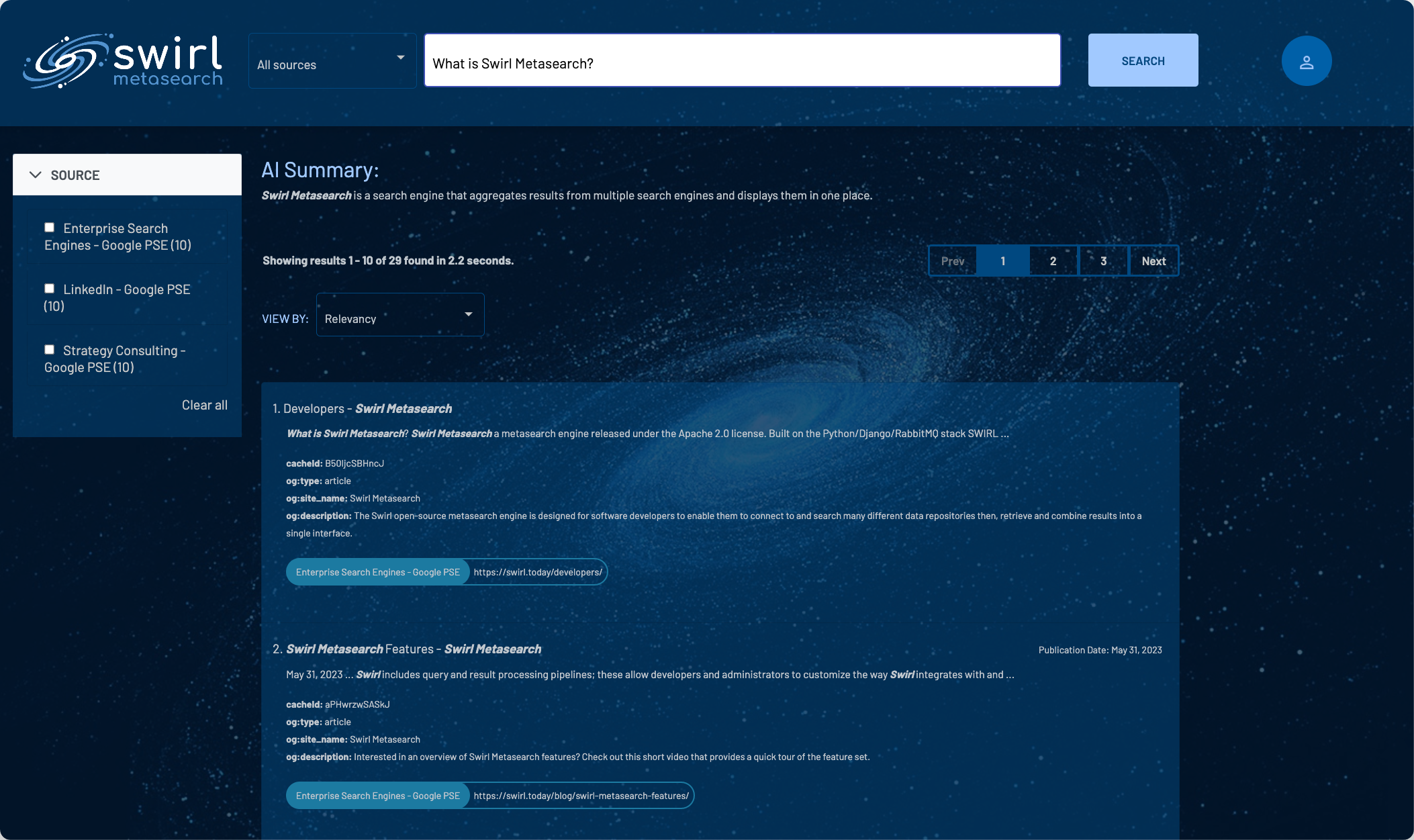 🔑 Swirl includes five (5) Google Programmable Search Engines (PSEs) to get you up and running right away. The credentials for these are shared with the Swirl Community.