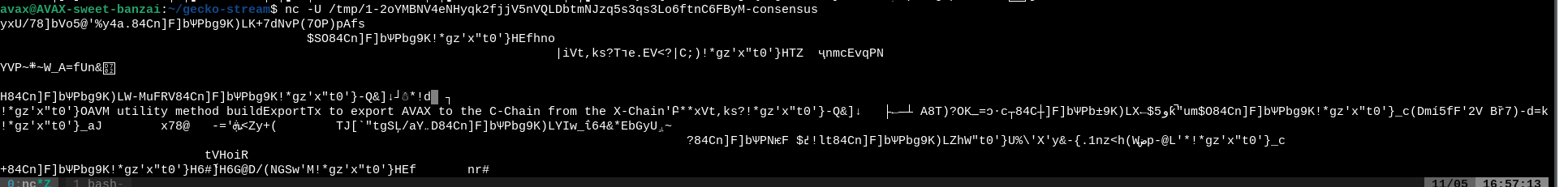 nc -U /tmp/1-2oYMBNV4eNHyqk2fjjV5nVQLDbtmNJzq5s3qs3Lo6ftnC6FByM-consensus