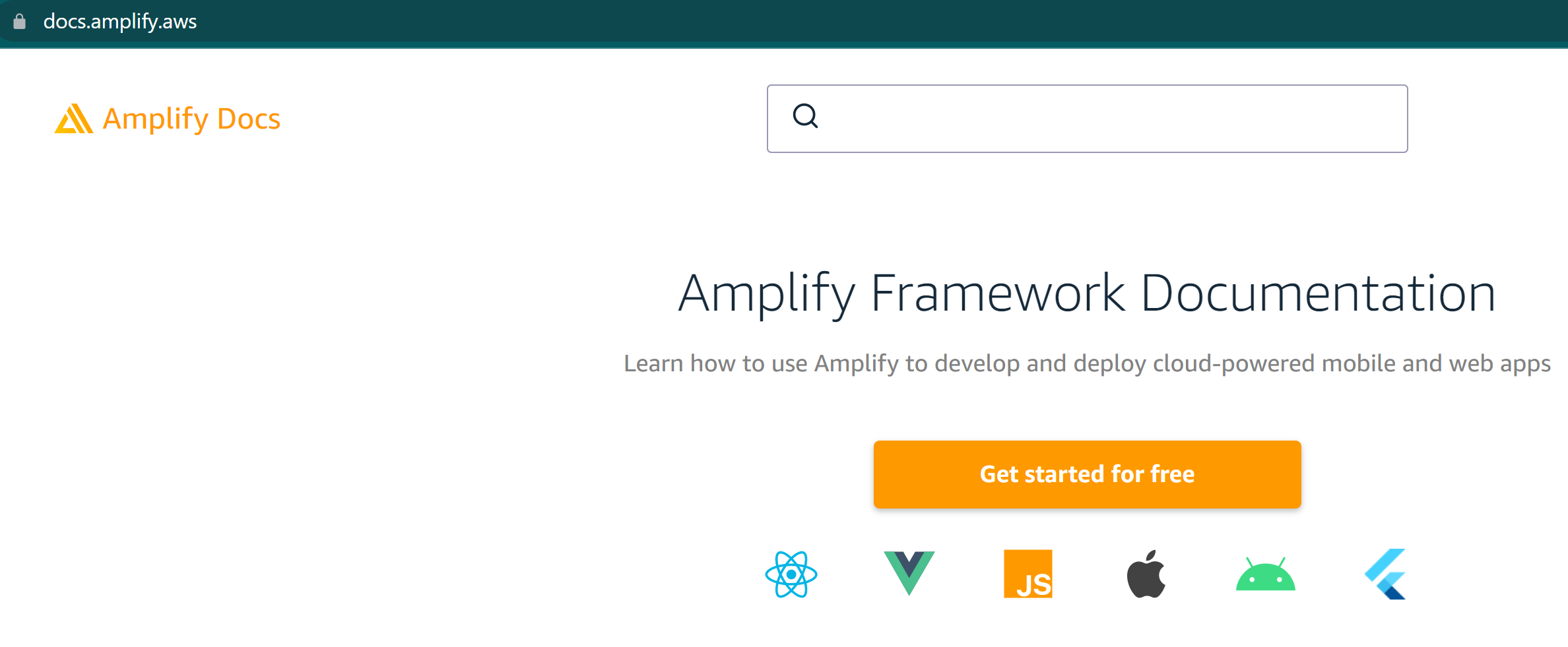 - It takes user to Getting started guide for React.js & AWS Amplify