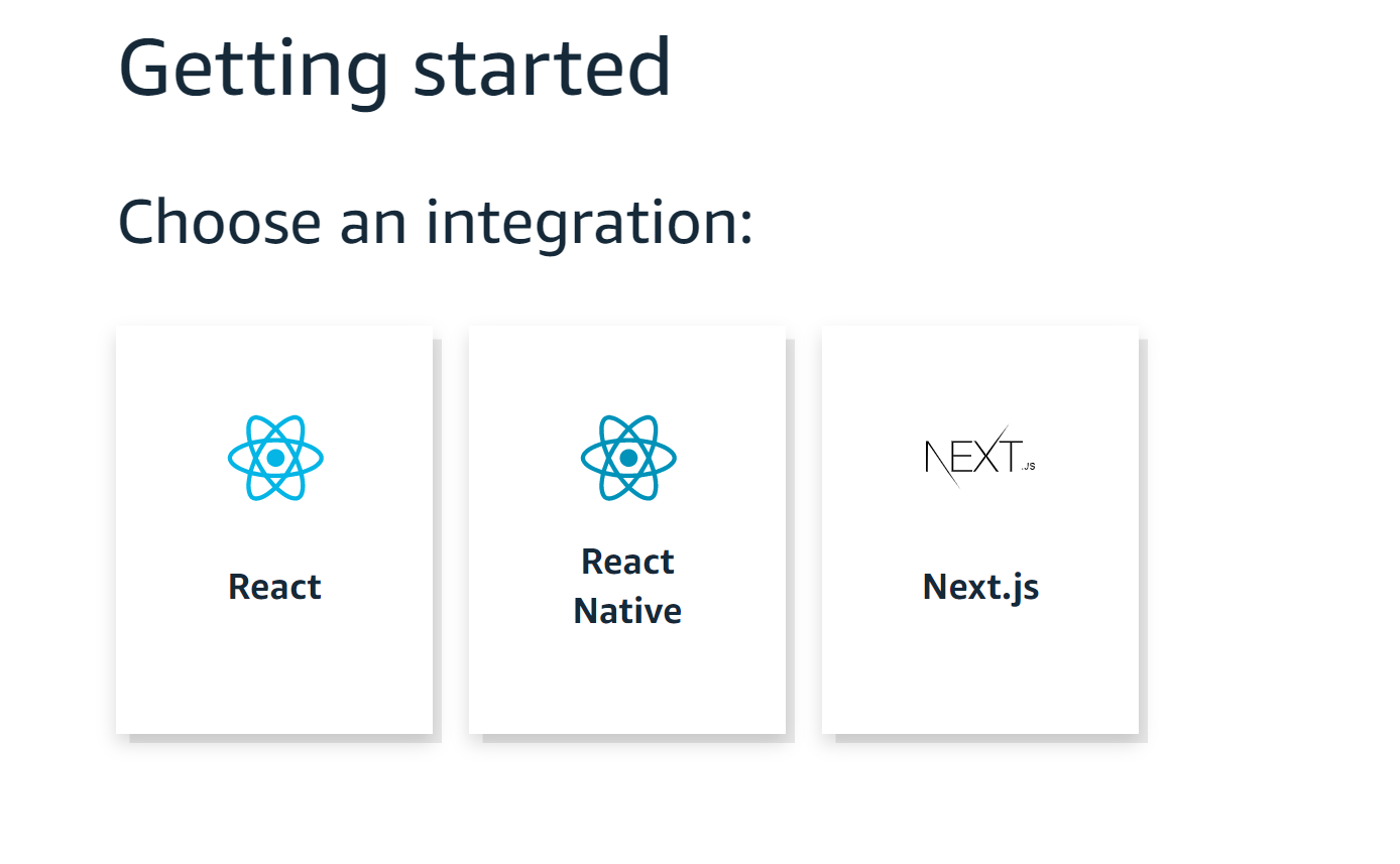 A new user looking for Next.js or React Native guides would not know upfront if there are dedicated pages for these entities. Instead, clicking React.js logo in the Hero section of Getting started guide for React.js & AWS Amplify should either open the getting started page listing all technologies, or open a new page where user can choose between all React.js flavors, namely: React.js, Next.js or React Native