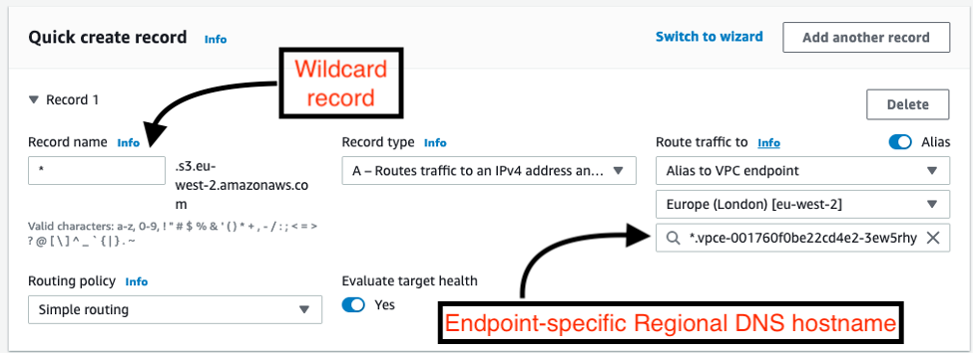 Private Hosted Zone missing the Wildcard A record to reference buckets within the domain.