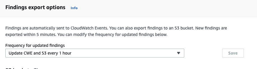 "guardduty-frequency"with the following possible values:FIFTEEN_MINUTES, ONE_HOUR, SIX_HOURSBy default, the Frequency for updated findings for GuardDuty is set at the default, SIX_HOURS.