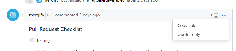 As near as I can tell 'checking all the boxes' means doing what they ask (done that) and also editing the bot's reply (I don't have permission). If it means something else could you please let me know? I haven't had experience with mergify before so I may be missing something obvious |