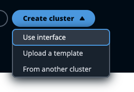 CreateButtonDropdowncomponentHiddenFileUploadand theFromClusterModalScreenshot