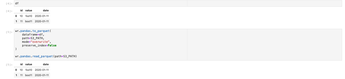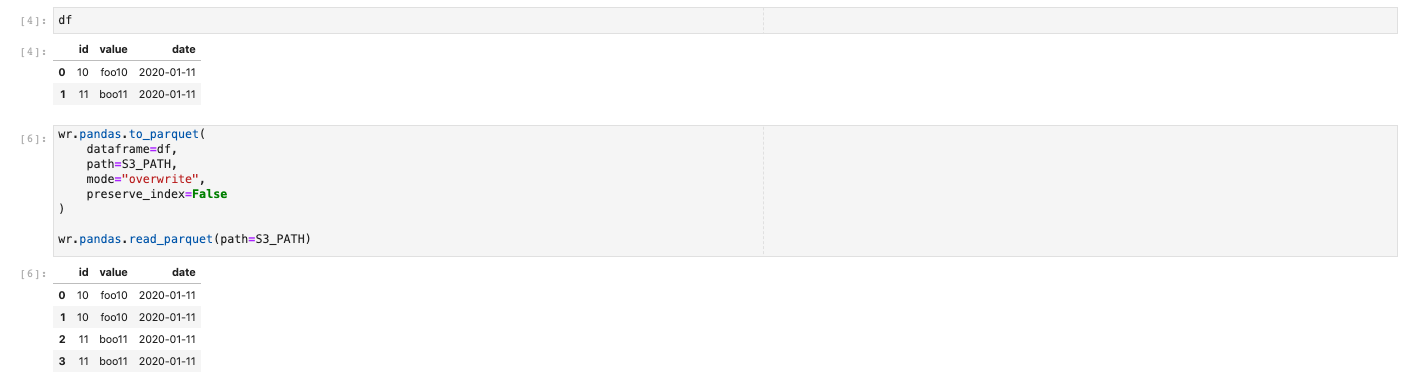 Maybe I am missing something very obvious but for me the overwrite mode in wr.pandas.read_parquet() is not overwriting but appending. I have followed the tutorial to overwrite from here and here is what I am getting: