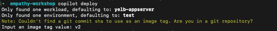 When I run copilot deploy, I get the following prompt: