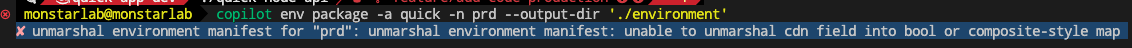 ✘ unmarshal environment manifest for "prd": unmarshal environment manifest: unable to unmarshal cdn field into bool or composite-style map