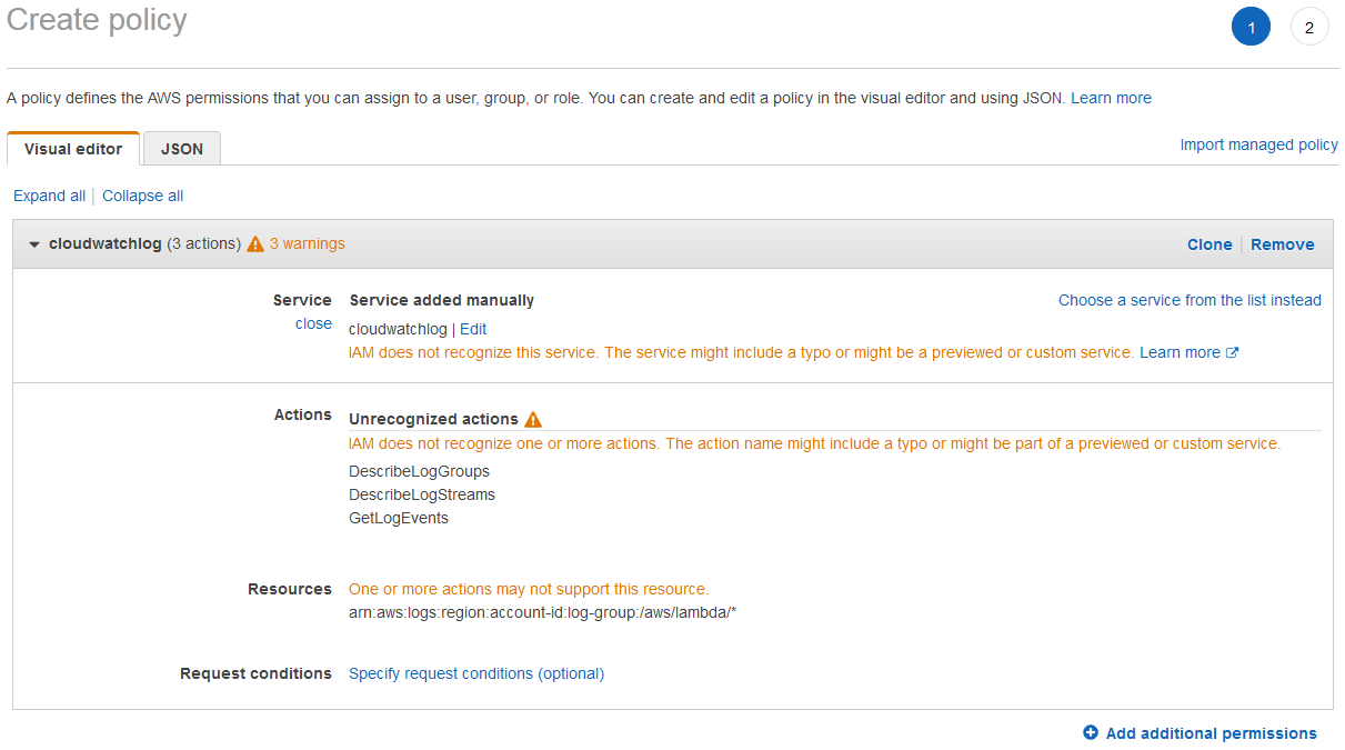 Fix some IAM Actions' namespace for CloudWatch Logs.