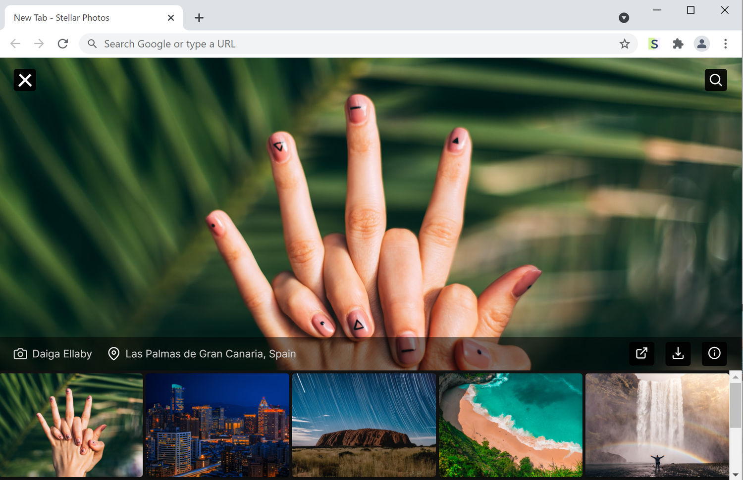 Experience a beautiful photo from Unsplash every time you open a new browser tab. Each image is specially curated and guaranteed to be stunning each time.