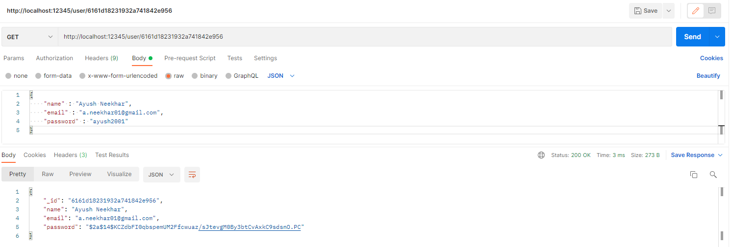 To get user data out of user collection the link is: http://localhost/12345/user/{id} replace id by the user's ID you want.