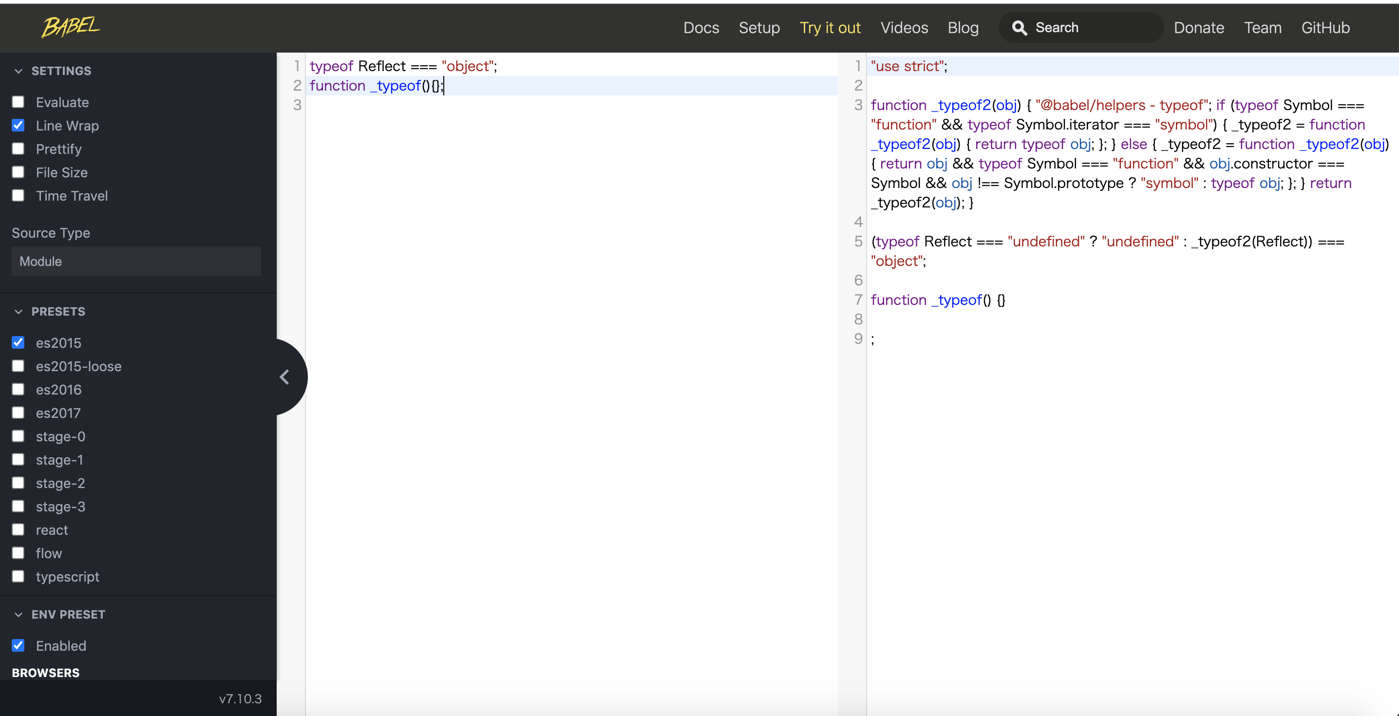 The name of the helper changes from _typeof to