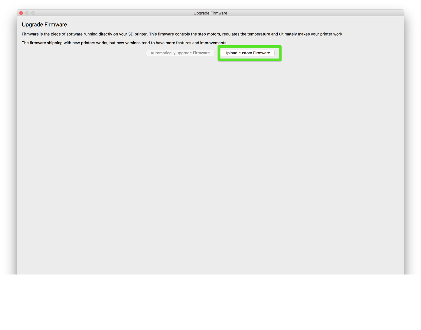- You run the upgrade procedure using Cura - the same program you are already using to slice your 3D models.
