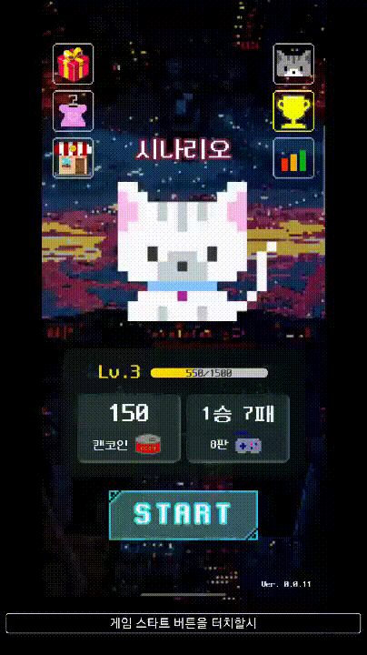 | 공격 시 화면 | 피버타임 화면 | 게임 종료 화면 |