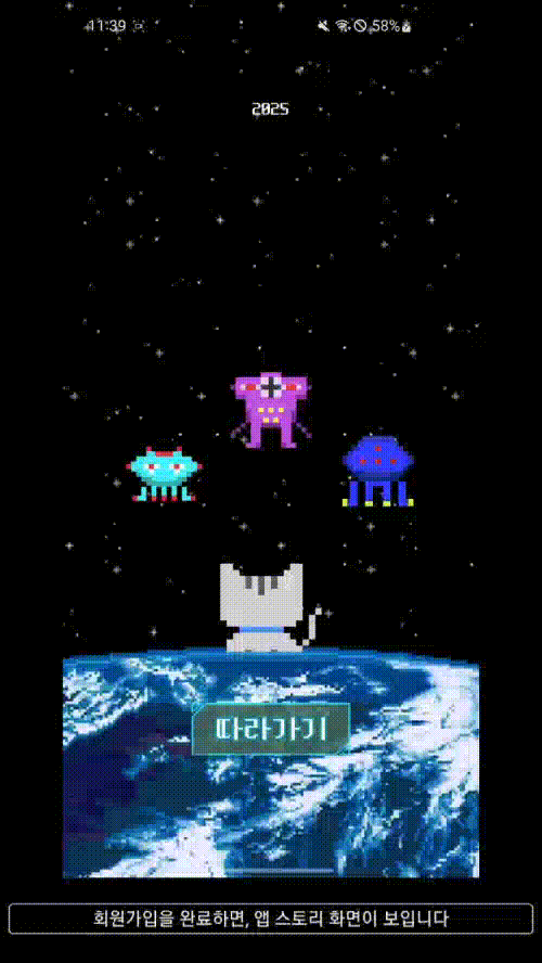 | 확인 버튼을 누르면 모바일 앱이 실행됩니다. (모바일 앱에서만 게임 시작이 가능합니다.) |