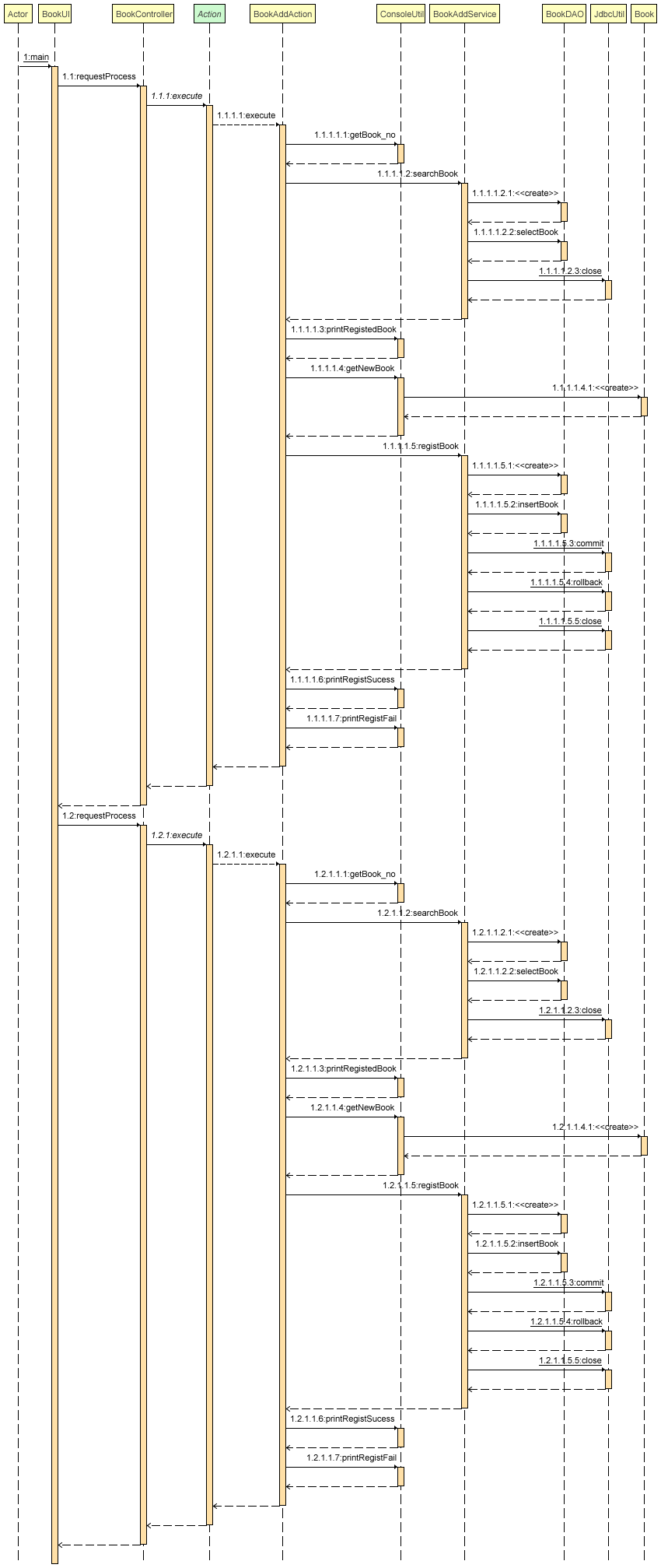 | 도서등록 | 새로운 도서정보(도서번호, 책제목, 작가명)을 등록한다. |